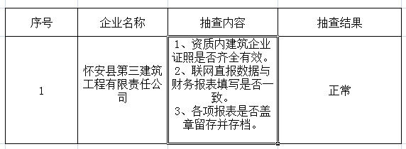 怀安县统计局2017年“双随机、一公开”建筑业抽查结果